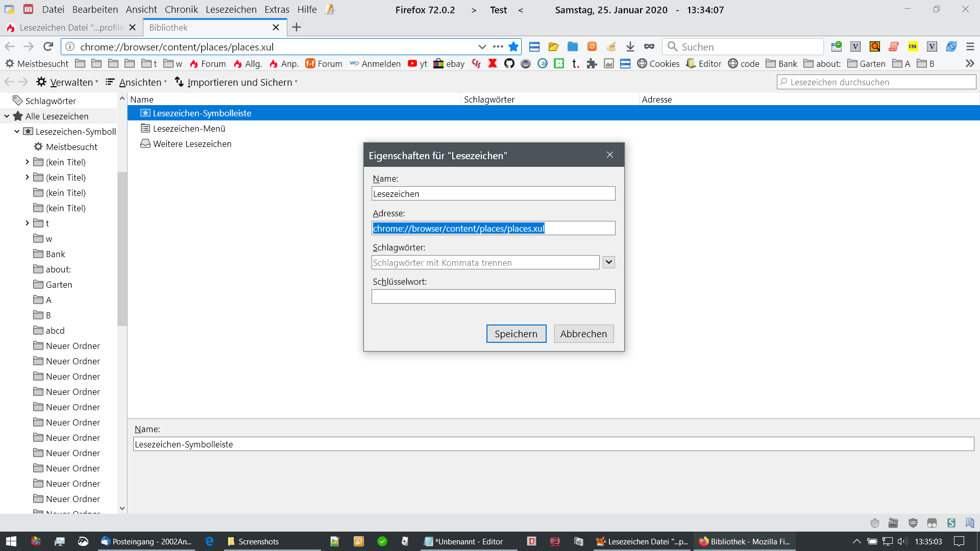 Rechtsklick in der Lesezeichensymbolleiste, oder einem vorhandenen Ordner..