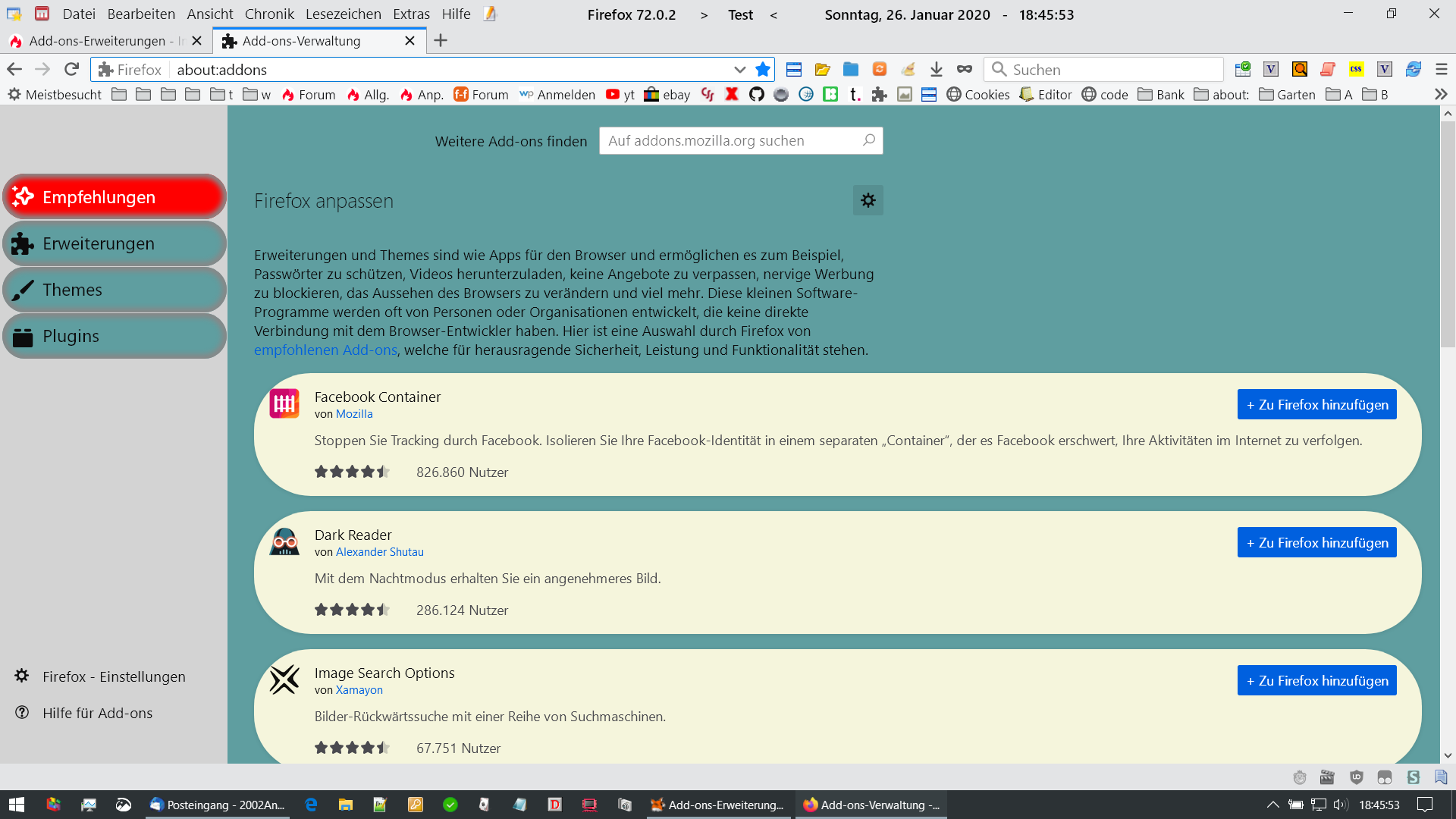 In der Addonsverwaltung gibt es die Empfehlungen, dieses Fenster ist noch nicht angepasst.