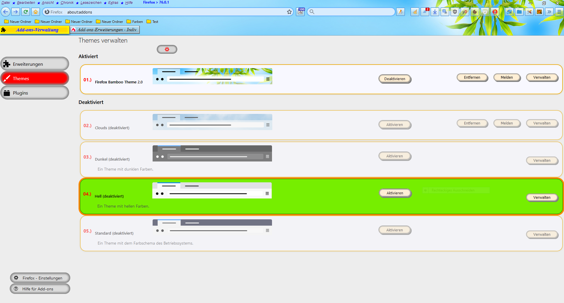 Jetzt habe ich mich noch mal daran gemacht, den bisherigen Code vollständig zu überarbeiten. Meines Erachtens nach müsste alles sauber laufen , die Container bei Themes sind in der Höhe reduziert, mehr geht wohl nicht.