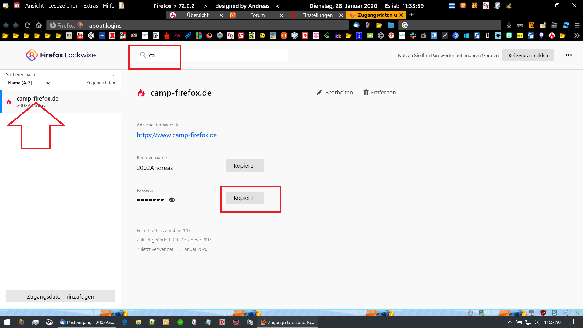 Das funktioniert soweit auch ganz gut und ich kann meine gespeicherten Daten unter "Zugangsdaten und Passwörter" einsehen.