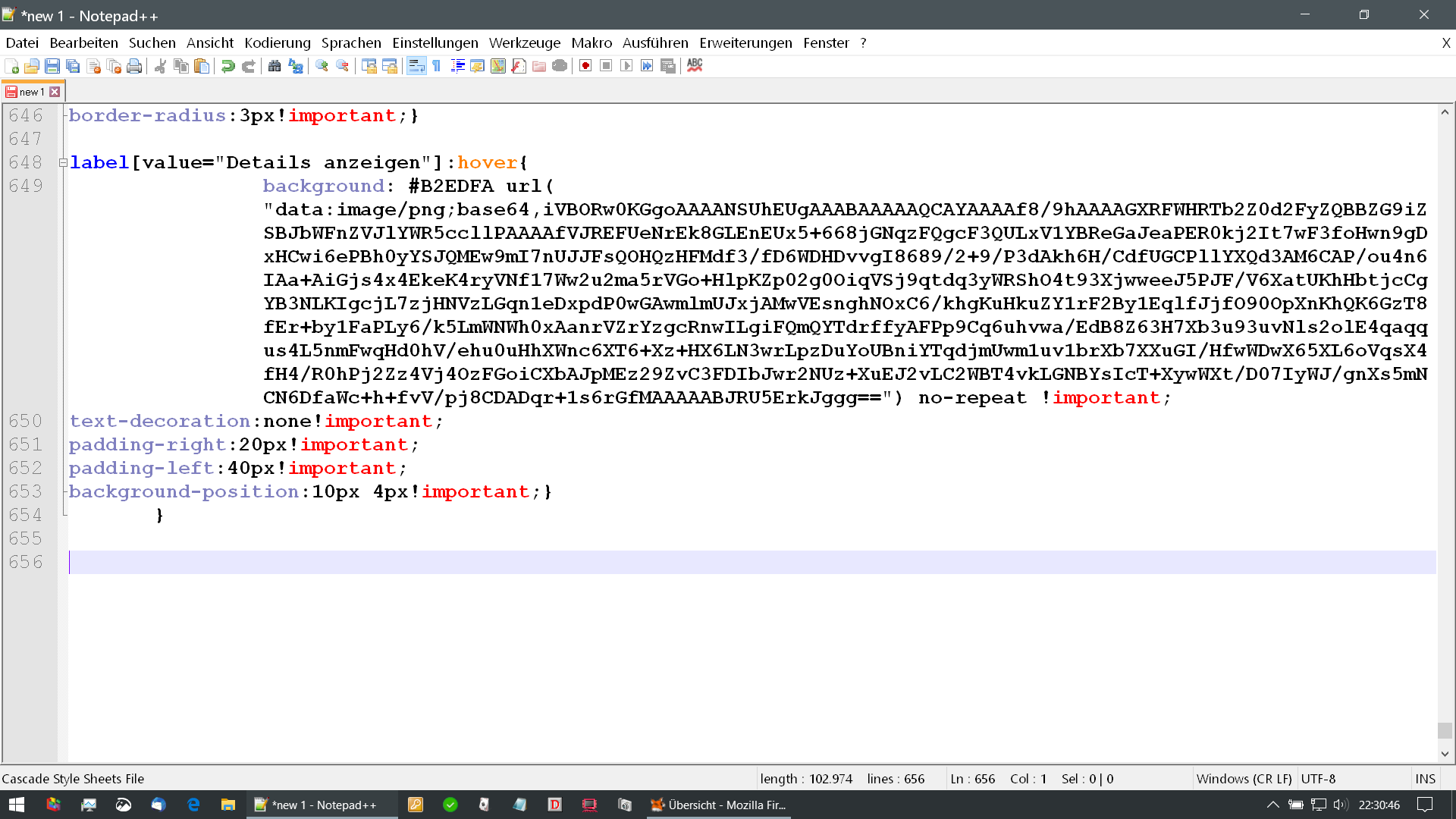 Meine damalige CSS Datei in in Stylish nur für Firefox und co.