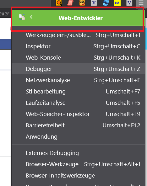 Da es sich um das Web-Entwickler-Untermenü handelt, solltest du noch den Code aus deiner Submenu-Webentwickler.css einstellen. Den habe ich bisher hier nicht gefunden.