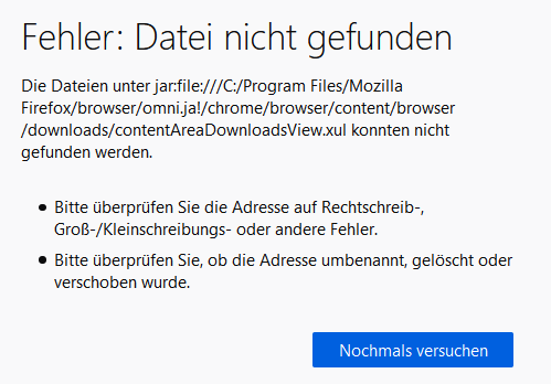 Bei der Anzeige des Downloads kommt folgende Fehlermeldung zustande: