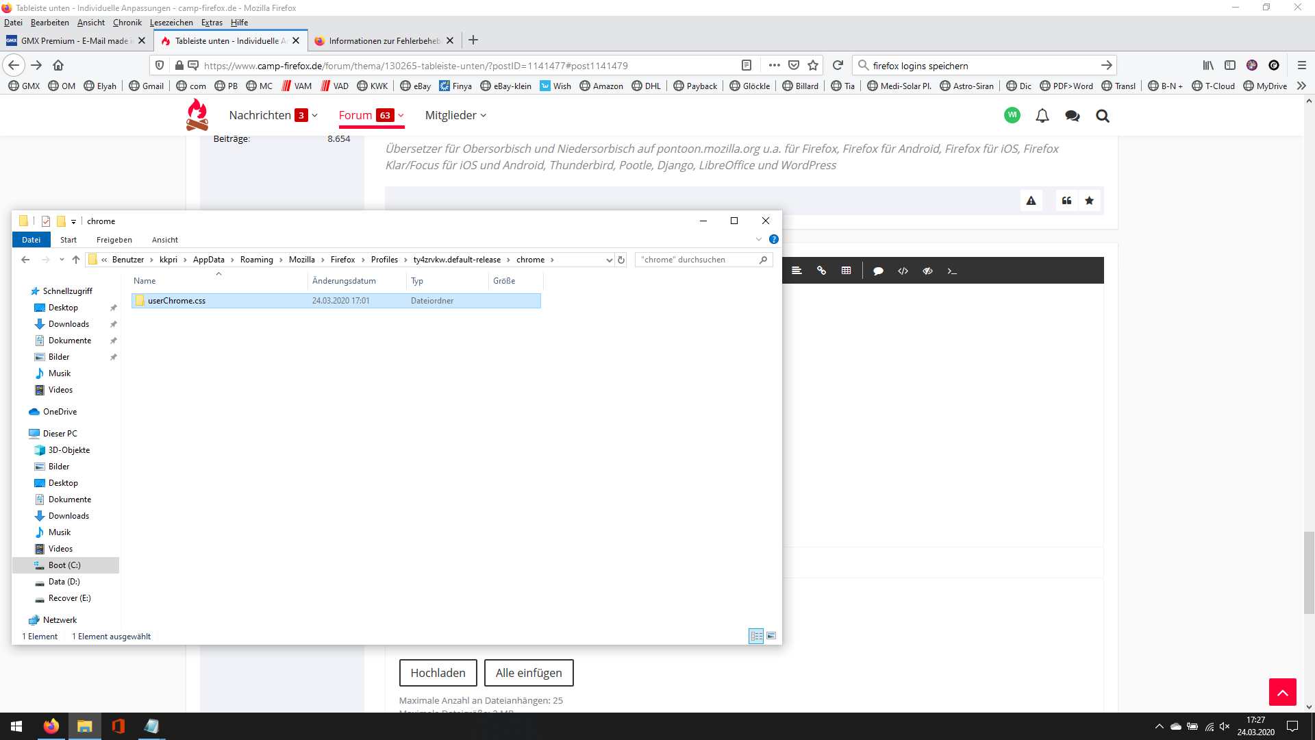 • ...sorry, wenn ich begriffsstutzig bin, aber ich habe den Odner chrome und darin den Ordner userChrome.css und darin den Code mit dem Editor eingefügt