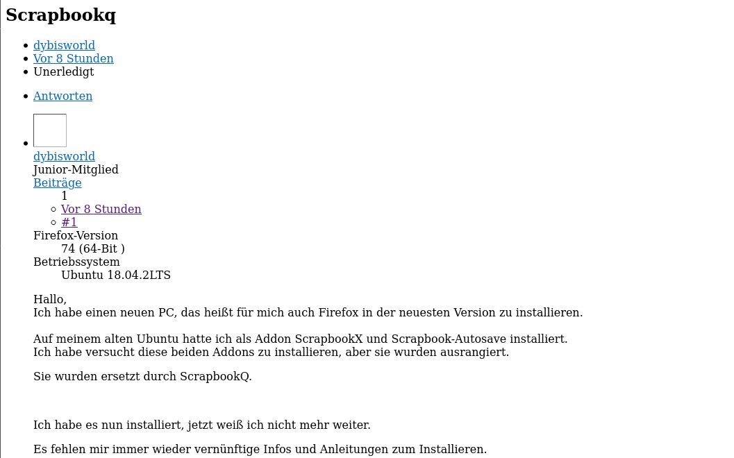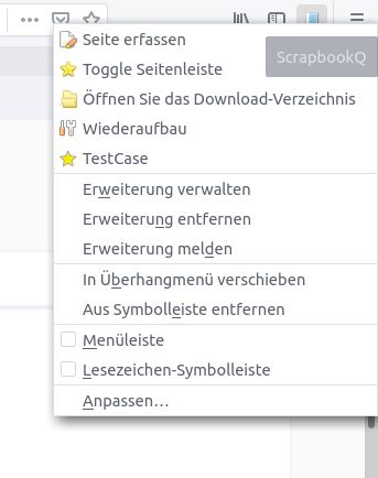 Angeblich soll nach der Installation ein Dropdown-Menu mit dem Namen ScrapbookQ im Firefox befinden, da ist aber nichts.