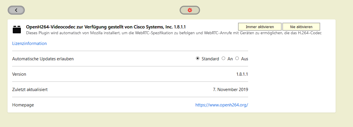 CSS@-moz-document url-prefix(chrome://mozapps/content/extensions/aboutaddons.html), url-prefix(about:addons) { html body div#full div#content div#main div addon-card div.card.addon{ min-width: 1100px !important; } }Damit wird nur unter Plugins das Feld erweitert, sonst war auch Themes betroffen.