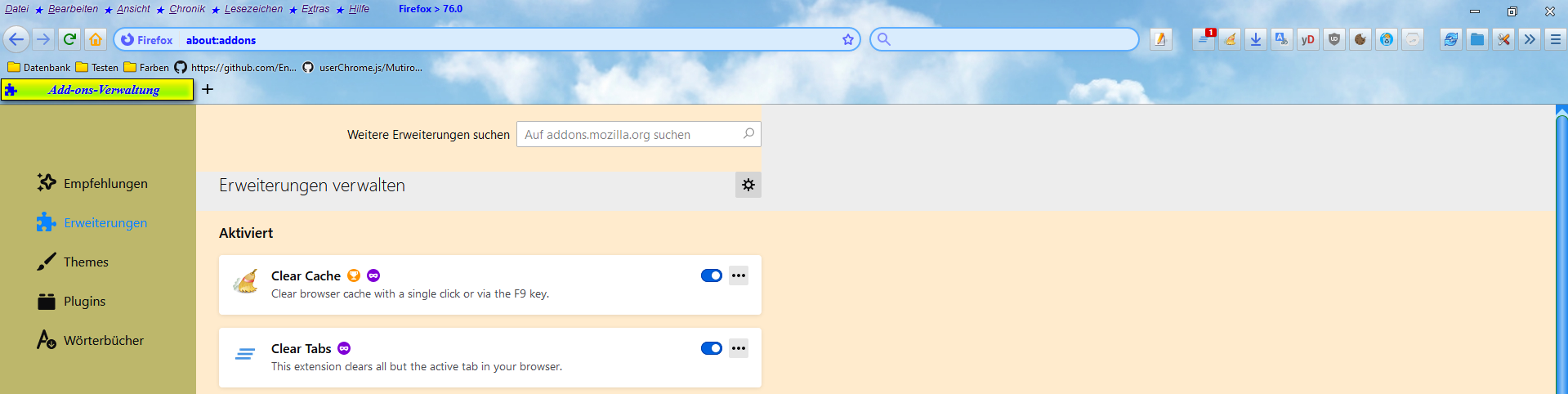 Nightly 76 Add-on Manager anpassen