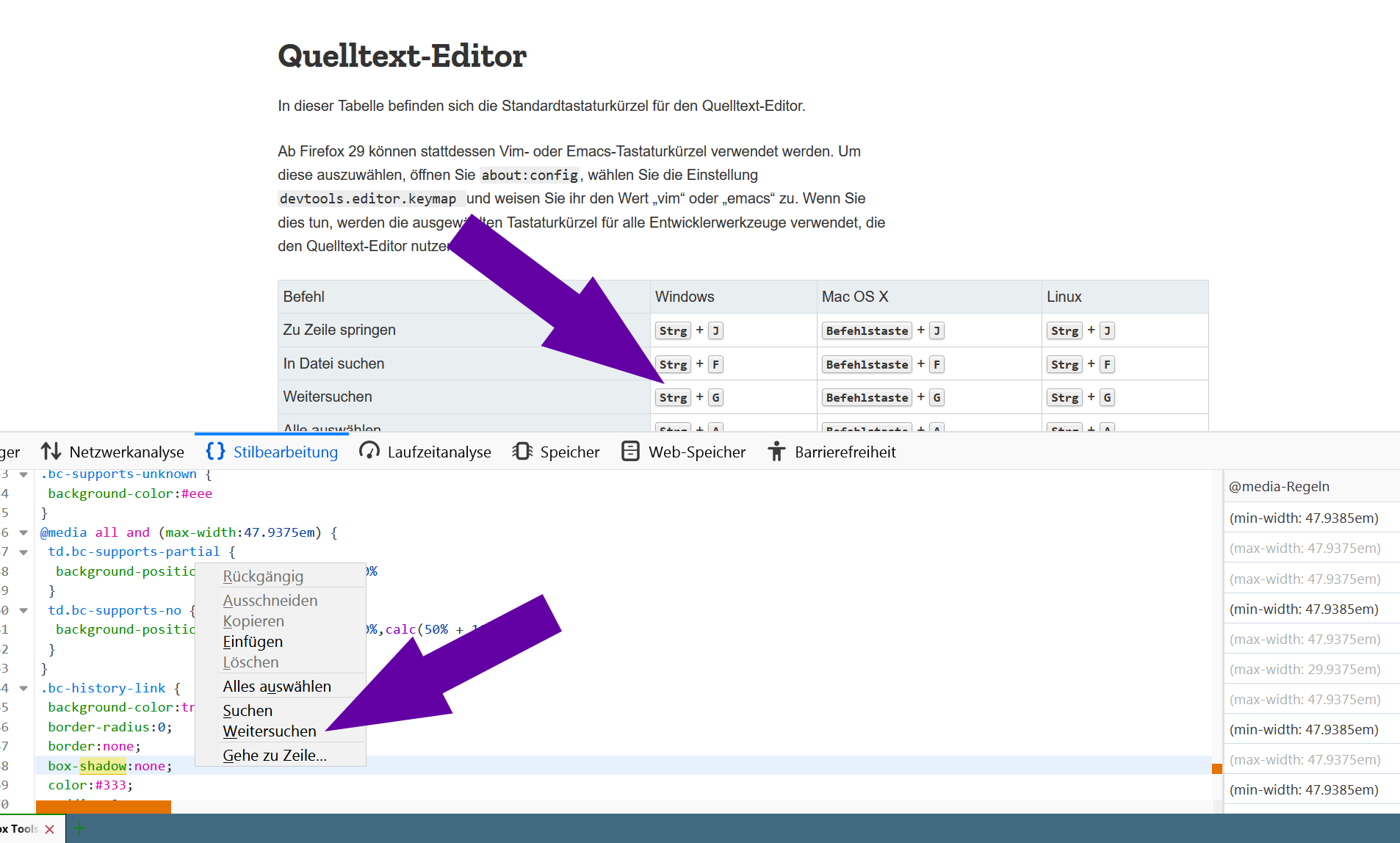 https://developer.mozilla.org/de/docs/Tools/Keyboard_shortcuts