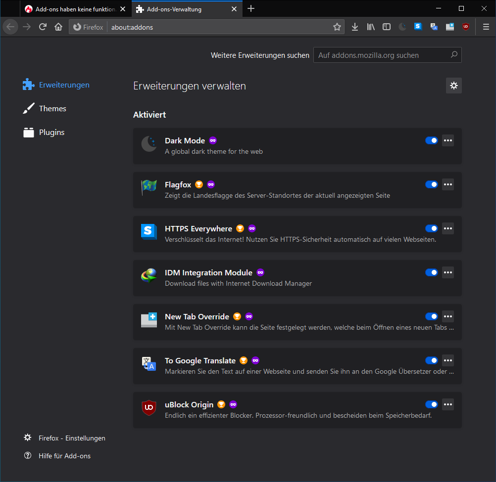 Hallo, leider haben die installierten Add-ons in der aktuellen Beta des Firefox 76 keine Funktion.
