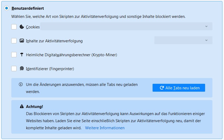 Ist es ausreichend, wenn ich dafür die Cookieeinstellung auf "Standard" setze?