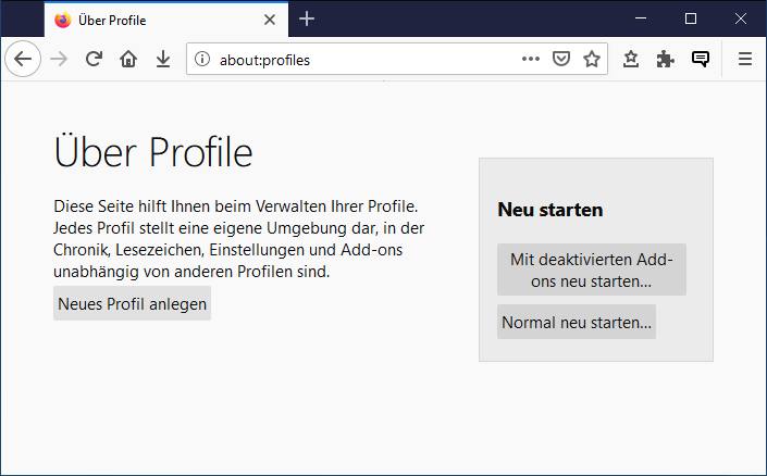 Anmerkung : Ich gab in der Adressleiste about:profiles ein. Dabei wurde ein leeres Profil angezeigt (siehe Foto unten),