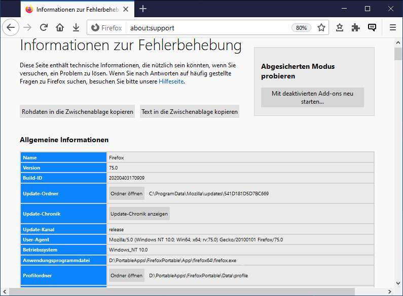 auf meinem PC mit Windows 10 benutze ich Firefox-Portable 75.0 und möchte