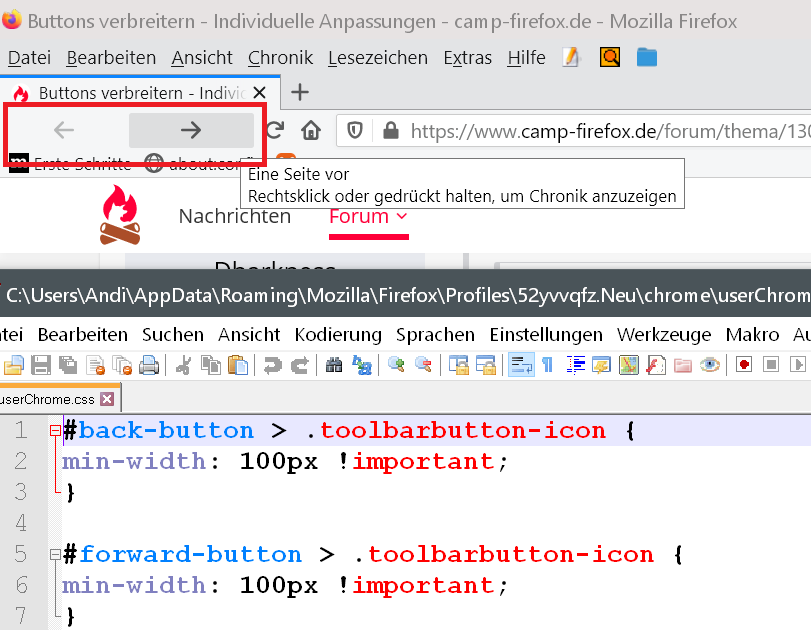 um die häufig verwendeten Buttons "Eine Seite vor" bzw. "... zurück"