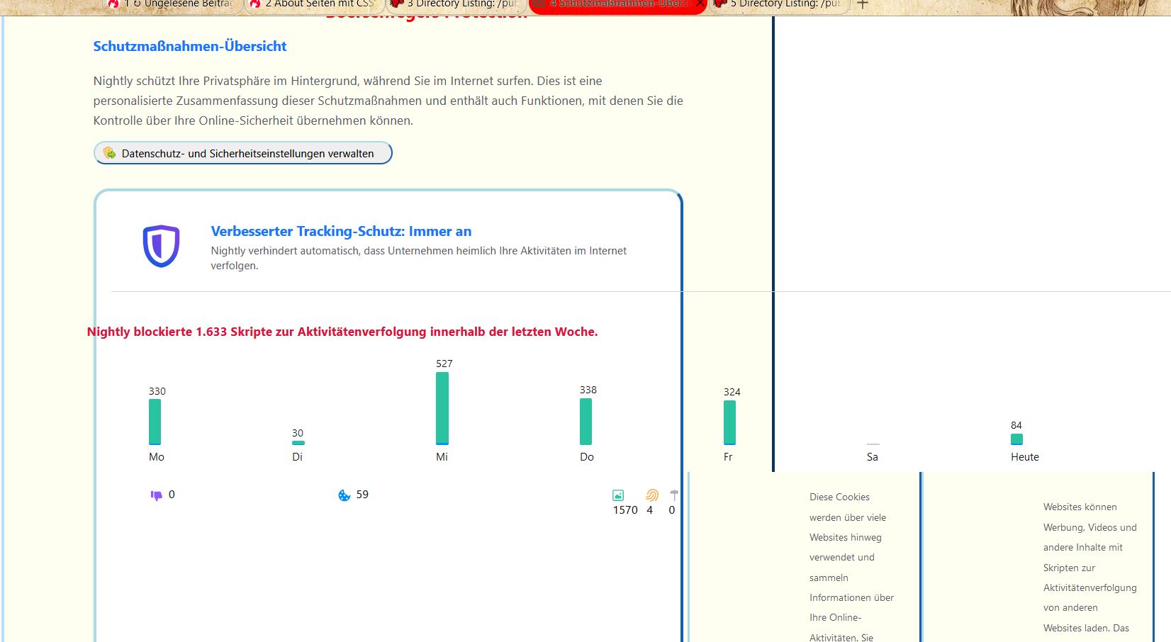 Schon ab Version 99 gibt es bei about:protections ganz unten eine Neuigkeit (Text immer noch Englisch, auch in v100).