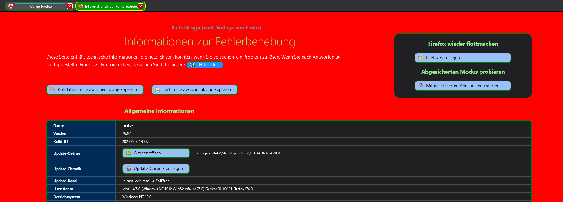 Im Fox 76 waren ja bei support auch noch Kleinigkeiten offen ( unter Media, Grafik und Sicherheit ). Ich habe mich mal daran gewagt, und hier das Ergebnis zur Probe. Bei mir im 76 wird alles ohne Fehler angezeigt.