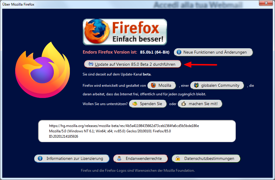 Diese verwende ich in allen Versionen, nur erschien der Button erstmals seit gestern im Nightly. Komisch daran ist, nicht immer. Gerade habe ich eine Version von 85 auf 86 aktualisiert, nach dem Update wie immer die Bestätigung auf Aktualität. Den Nightly weiter offen gelassen, nach einer Weile den Dialog geöffnet, da erscheint der Button.:/