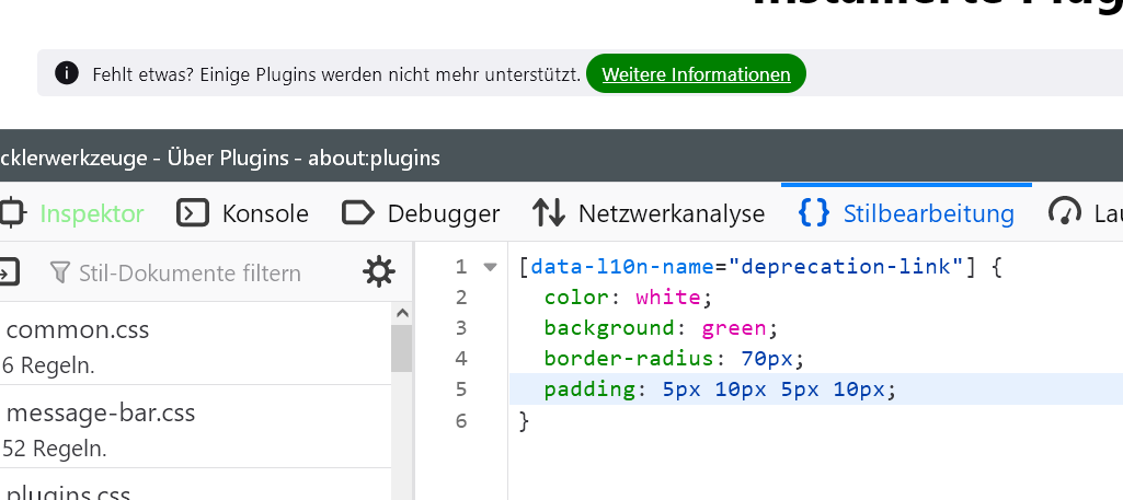 Nur zur Info, im Nightly musste ich bei about:plugins einen Selektor anpassen, für diesen Button.