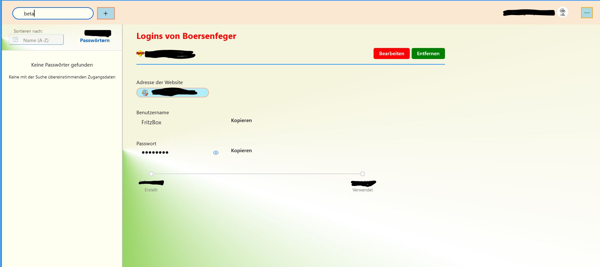 Alles anzeigen@namespace url(http://www.w3.org/1999/xhtml); @-moz-document url-prefix(about:logins) { .container > ol:nth-child(1){ scrollbar-width: none !important; } button.menu-button.ghost-button:hover { background-color: lightblue !important; fill: red !important; } .meta-info:first-of-type::before { border-top: none !important; } .column:before { content: "Design by Endor & FuchsFan 07.2024"; margin-top: 15px !important; font-size: 14px !important; font-weight: bold !important; color: red !important; } /* linke Seite die Auflistung */ body > login-list { width: auto !important; border-bottom: none !important; scrollbar-width: none !important; border-right: none !important; background-color: #fffff0 !important; } /* oben der Text "Zugangsdaten" */ .count { color: #0f6acc !important; font-size: 15px !important; font-weight: bold !important; margin-left: 10px !important; } body > login-list:nth-child(2){ border-bottom: none !important; } li[class="login-list-item"], li[class="login-list-item selected"]{ padding-left: 25px !important; } [class="title"]{ color: #d90000 !important; font-weight: 600 !important; font-size: 16px !important; } [class="username"]{ color: #008c69 !important; font-weight: 600 !important; font-size: 15px !important; } div.detail-row:nth-child(2) > div:nth-child(1) > label:nth-child(1) > input:nth-child(2), .password-display { width: 280px !important; } /* erstes Feld linke Seite (bei Name u. Zugangsdaten) */ div.meta { height: 55px !important; margin-top: 4px !important; padding-top: 12px !important; padding-left: 35px !important; background-color: #fffff0 !important; } /* Hintergrundbox bei Button mit + Zeichen */ .create-login-button-container { padding-left: 0px !important; padding-right: 0px !important; padding-top: 20px !important; margin: -15px 140px 0 0!important; box-shadow: none !important; border-top: none !important; background-color: none !important; } /* Button mit + Zeichen */ [data-l10n-id="create-login-button"]{ background-color: transparent !important; color: red !important; } [data-l10n-id="create-login-button"]:hover{ color: #0066cc !important; } .container > ol:nth-child(1){ border-bottom: none !important; box-shadow: none !important; } .header, li { border-bottom: none !important; box-shadow: none !important; } .header { margin-top: 20px!important; } /* HG für das obere rechte Feld */ header { background-color: #fbe8d2 !important; height: 56px !important; border-top-right-radius: 28px !important; } /* HG für das linke obere Feld */ login-list.initialized{ background-color: #fbe8d2 !important; border-bottom-left-radius: 28px !important; border-top-left-radius: 28px !important;} .empty-search-message { background:#fffff0 !important; border-bottom: none !important; box-shadow: none !important; } html { background: #ffffff!important; } body > h1:nth-child(2) { margin-top: 10px !important; } body { max-width: 1200px !important; /* Breite einstellen */ max-height: 800px !important; margin-left: auto !important; margin-right: auto !important; border-left-color: lightblue!important; border-top-color: lightblue!important; border-right-color: dodgerblue!important; border-bottom-color: dodgerblue!important; border-width: 4px !important; border-style: outset !important; border-radius:28px!important; margin-top: 30px !important; } /* Suchfeld oben */ .filter, login-filter { appearance: none !important; border-radius:24px !important; margin-left: 60px !important; margin-top: 2px !important; min-width: 235px !important; max-width: 235px !important; } div.listHeader div.create-login-button-container button.create-login-button { margin-left: 65px !important; margin-top: -155px !important; } .menu-button { fill: #e69500 !important; } .fxaccounts-extra-text { color: #0066cc !important; font-weight: bold !important; padding-right: 30px !important; } div.container ol{ background-color: beige !important; } /* rechte Seite großes Feld */ html.official-branding.no-logins.initialized body section login-intro, div.container { max-height: 728px !important; } body > login-item:nth-child(3){ border-bottom-right-radius: 28px !important; } .time-created, body > login-list:nth-child(2), li, .header, header, .meta{ box-shadow: none !important; } /* Linkes oberes Feld unteren Rand entfernen */ .meta{ border-bottom: none !important; } .meta, body > login-item:nth-child(3), .container { background-color: #fffff0 !important; } .meta:hover { background: #ffdb4d !important; } #login-sort label { padding-left: 25px !important; } .list-item.selected { background: #fff0b3 !important; border-left: 2px!important; } .list-item.selected:hover { background: #ffdb4d !important; } .list-item { background-color: #FFFFF0 !important; } .list-item:hover { background-color: #ffe680 !important; } .login-item-title { color: #0066cc !important; } .favicon, .icon, .login-item-favicon { fill: #e69500 !important; } div.container { border-left: 1px solid silver !important; } #login-sort { background: #F0F0F0 url("..//icons/Bild86.png")no-repeat !important; padding-left:40px !important; padding-right: 5px !important; padding-top: 2px!important; padding-bottom: 4px!important; background-position:10px 6px!important; font-size:14.0px!important; border-style: outset !important; border-left-color: lightblue!important; border-top-color: lightblue!important; border-right-color: dodgerblue!important; border-bottom-color: dodgerblue!important; border-width:2px !important; color:black !important; margin-left: -15px !important; max-width: 160px !important; } #login-sort:hover { background: #B2EDFA url("..//icons/Bild86.png")no-repeat !important; padding-left:40px!important ; border-style: outset !important; border-width:2px !important; border-left-color: #bbddff !important; border-top-color: #bbddff !important; border-right-color: #11508d !important; border-bottom-color: #11508d !important; background-position:10px 6px!important; } .ghost-button:not([class="menu-button ghost-button"]):not([class="menuitem-butt