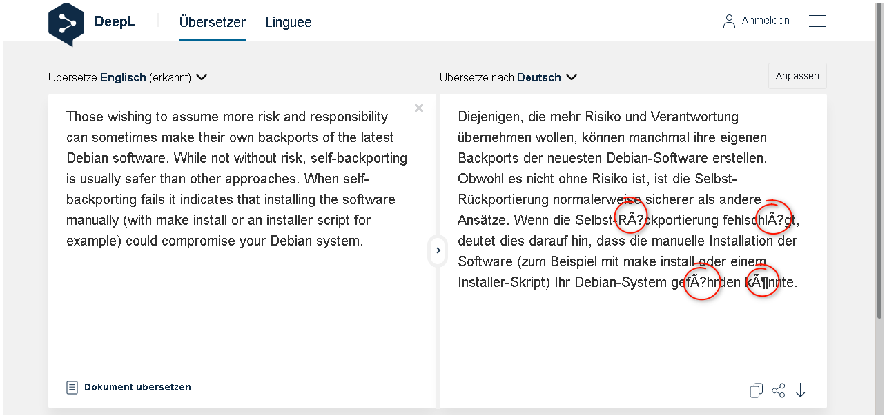 DeepL: Nicht alle Umlaute werden dargestellt.