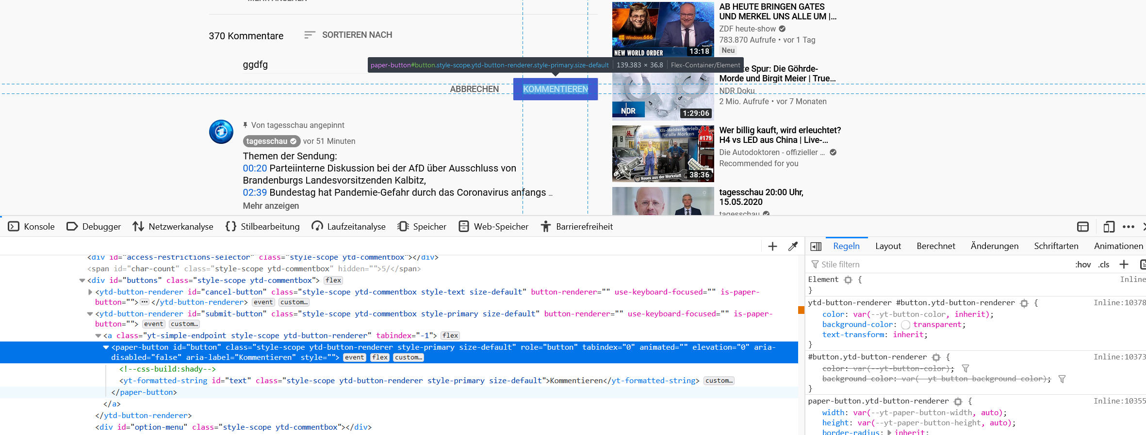 wenn man Kommentare bei Youtube schreiben möchte und Absendet. Dann ist der Absende Button in blau.