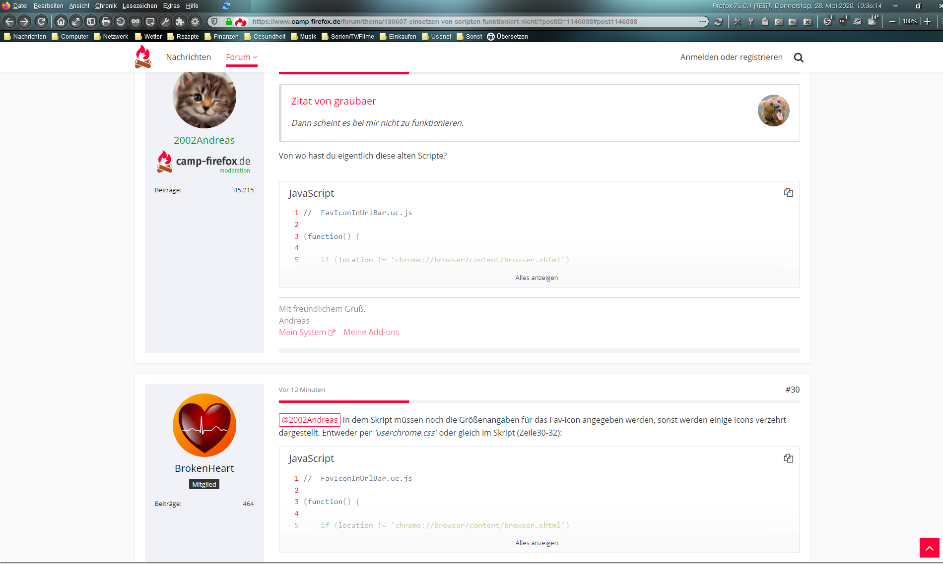 • 2002Andreas In dem Skript müssen noch die Größenangaben für das Fav-Icon angegeben werden, sonst werden einige Icons verzehrt dargestellt. Entweder per 'userchrome.css' oder gleich im Skript (Zeile30-32):