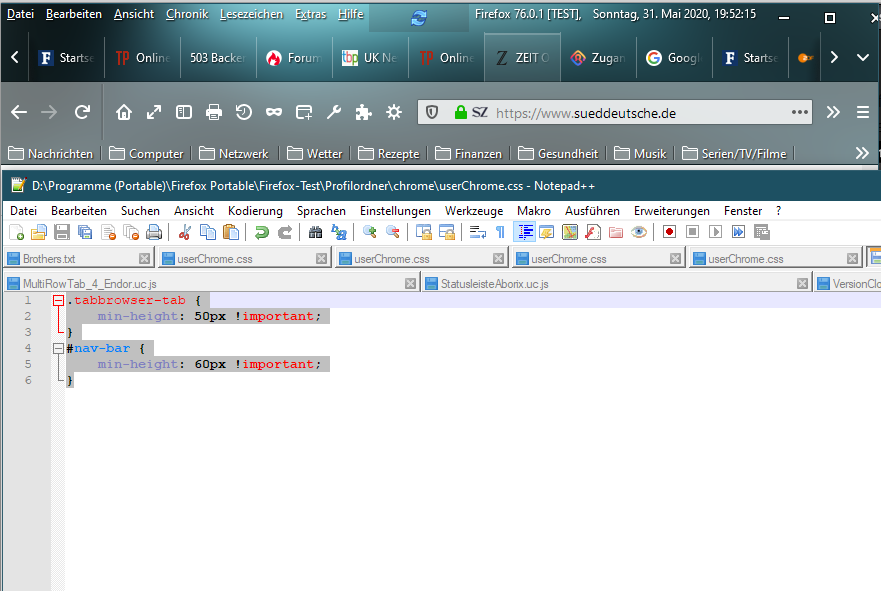 Auf Reddit habe ich von hier ( https://www.reddit.com/r/FirefoxCSS/c…ify_tab_height/) das gefunden(das funktioniert gar nicht):