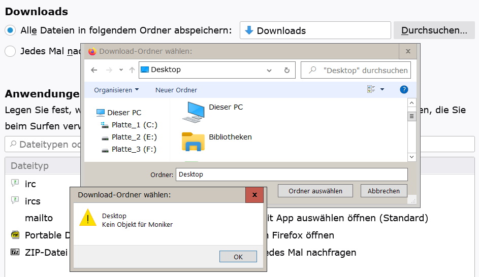 Wähle den Desktop-Ordner entweder unter deinem Benutzernamen oder unter 'Dieser PC' ('Computer') aus, dann sollte es auch funktionieren.
