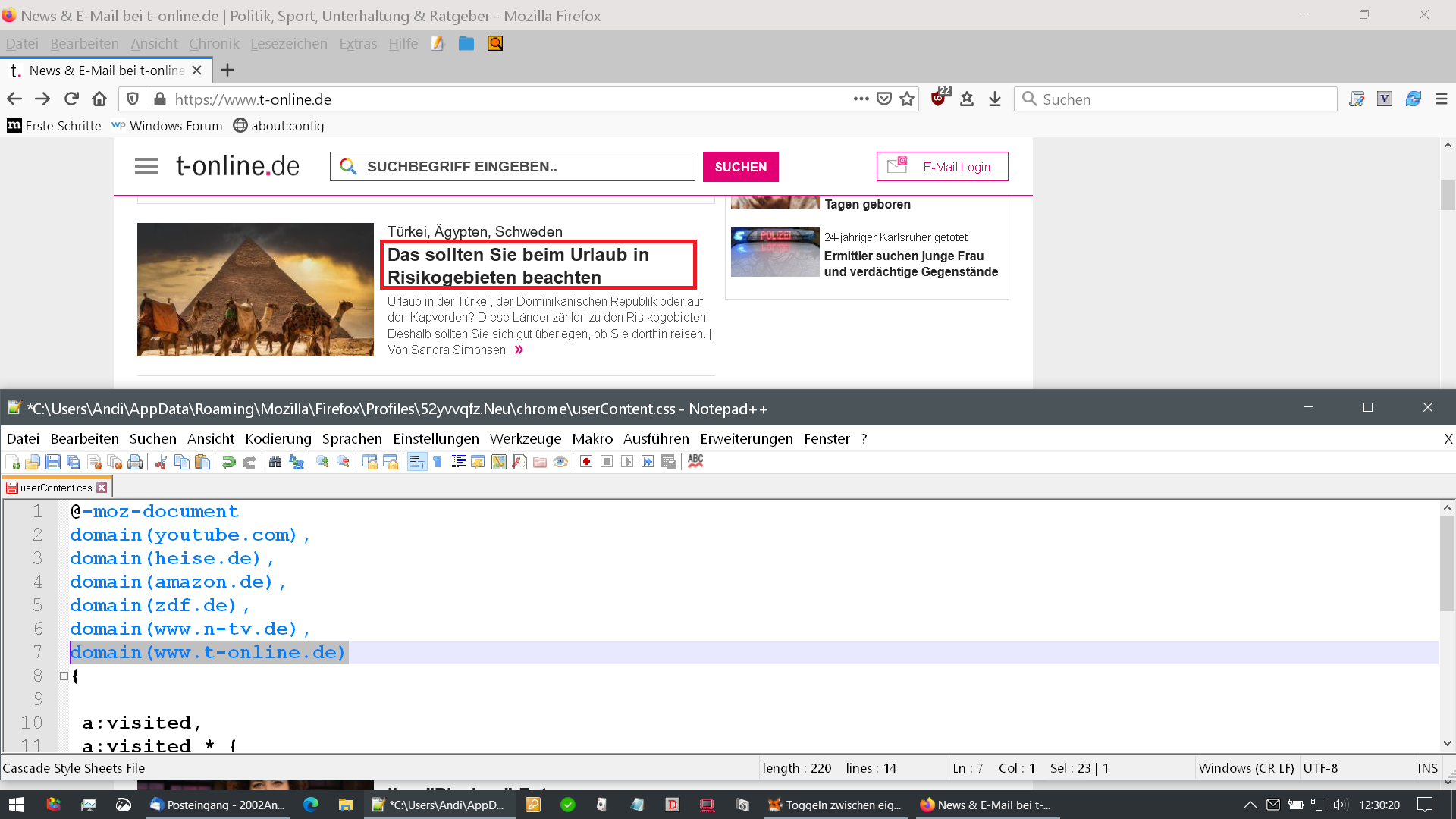 Toggeln zwischen eigenen Farben und Farben der Webseite (browser.display.document_color_use)
