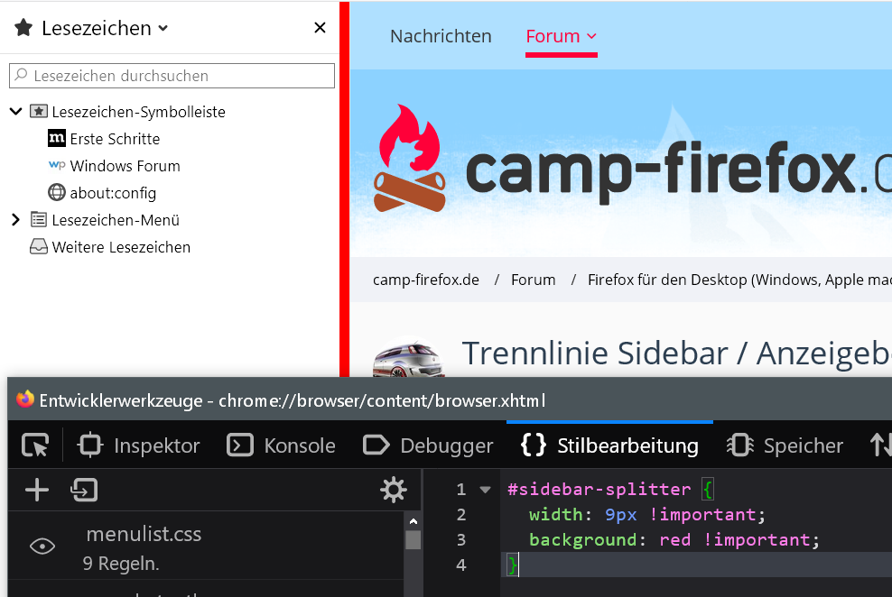 bezieht sich auf die (verschiebbare) senkrechte Trennlinie zwischen Sidebar und Anzeigebereich.