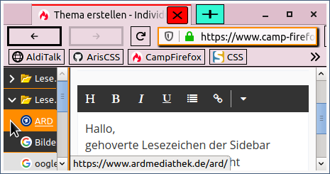 gehoverte Lesezeichen der Sidebar haben bei mir wie gewünscht