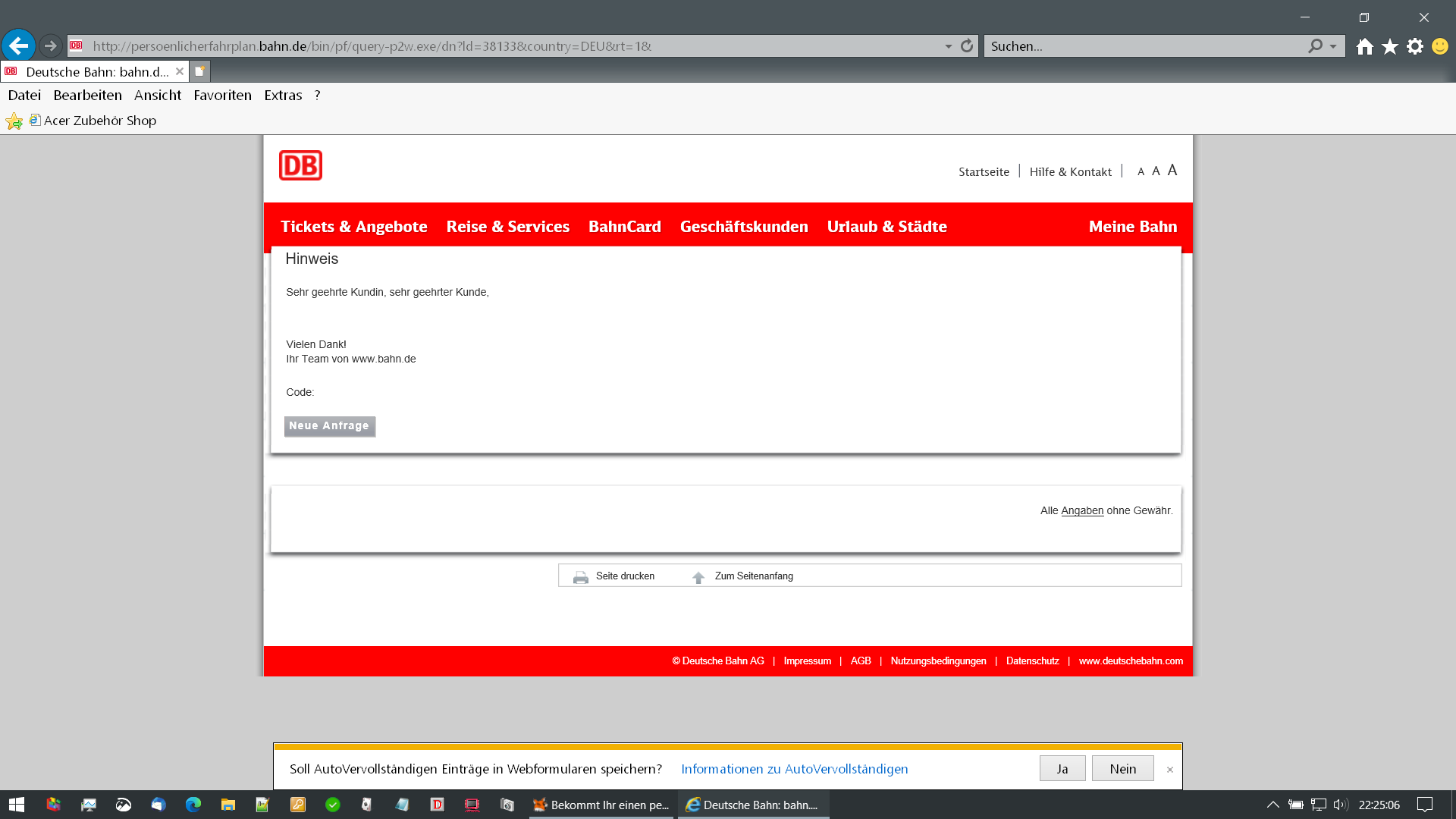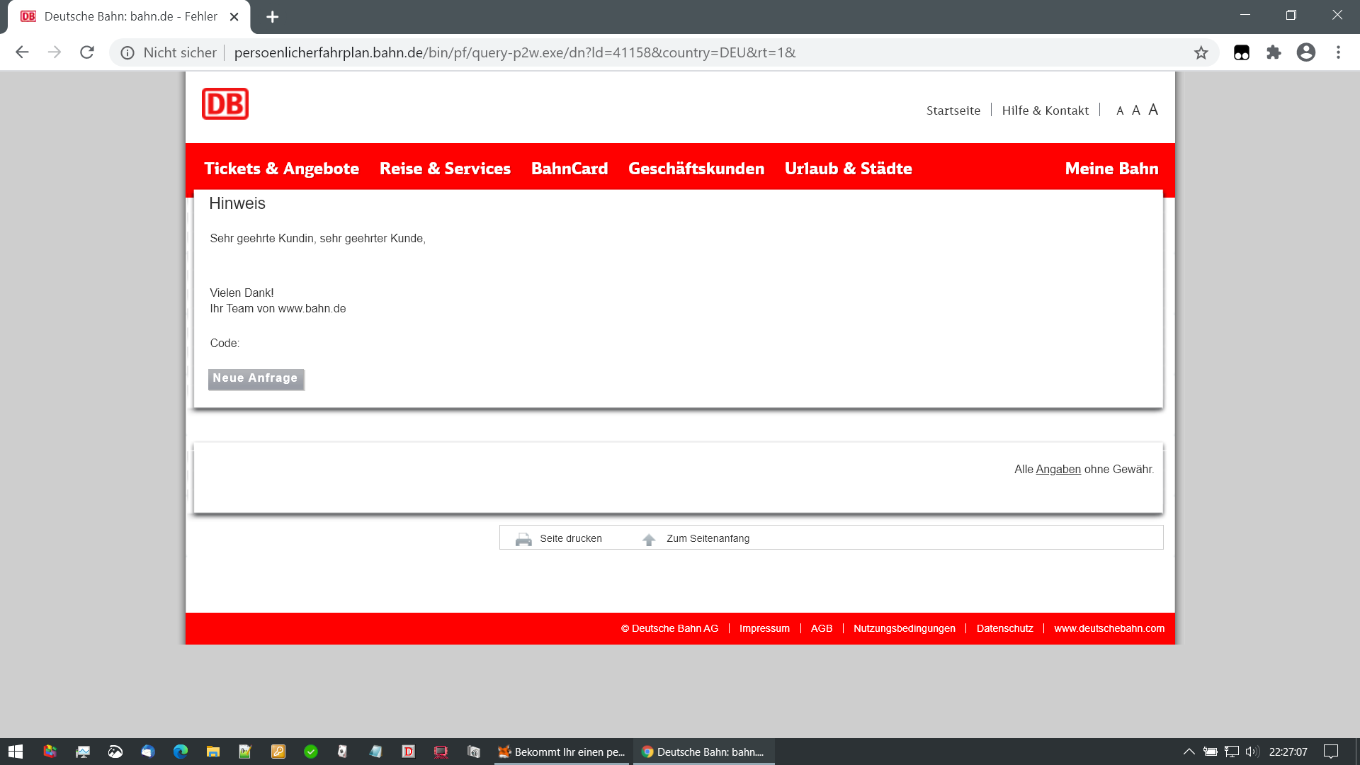 Fehler bei der Bahn oder Firefox oder Einstellung?