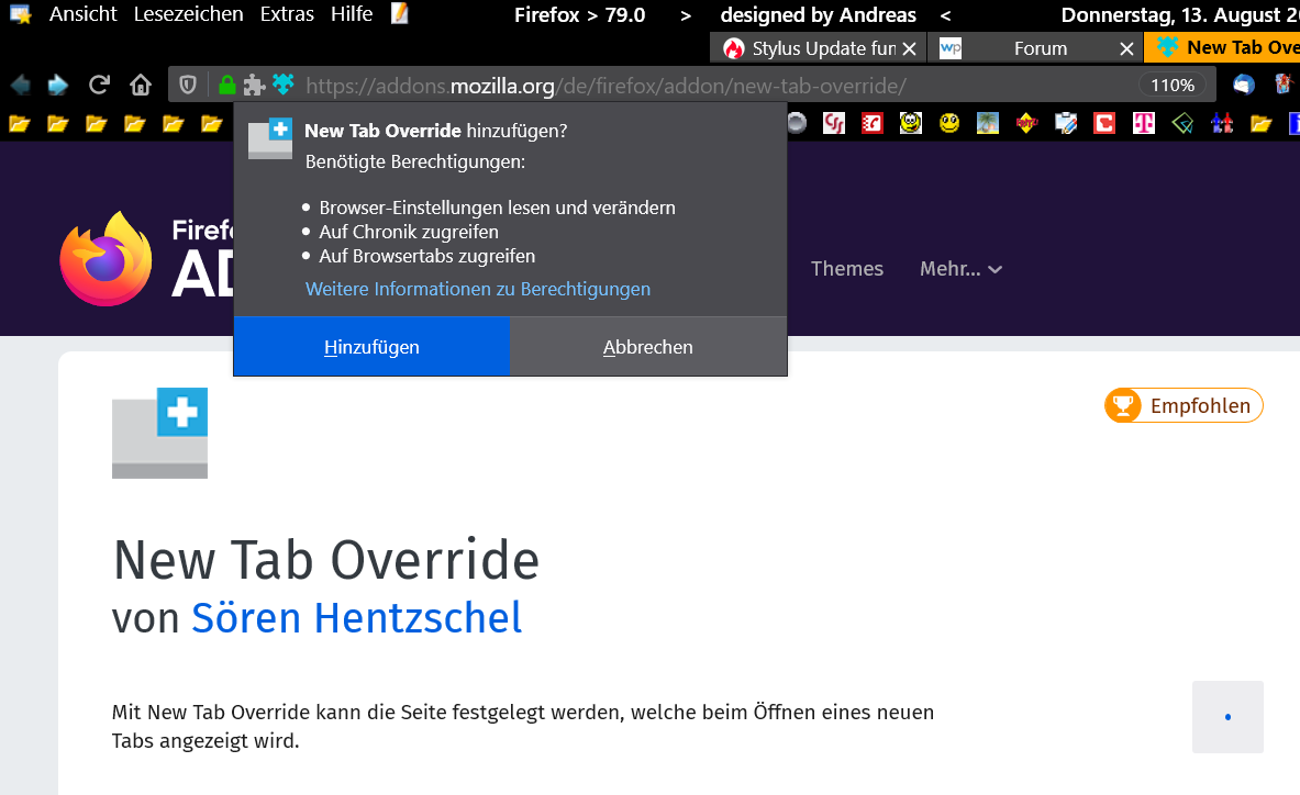 Ziehe ich den Button des Skriptes an eine sichtbare Stelle zb. Firefox Symbolleiste dann sieht es so aus.