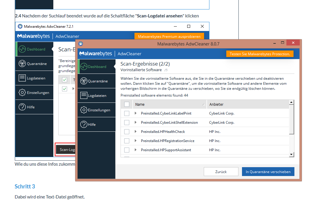 Nun habe ich das mit dem adw-cleaner gemacht, aber ab dem Punkt 2.4 sieht das bei mir anders aus: