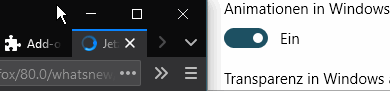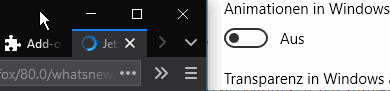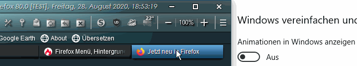 Und mit prefers-reduced-motion fragt Firefox genau jenen Schalter in Windows ab (beide haben die gleiche Auswirkung)