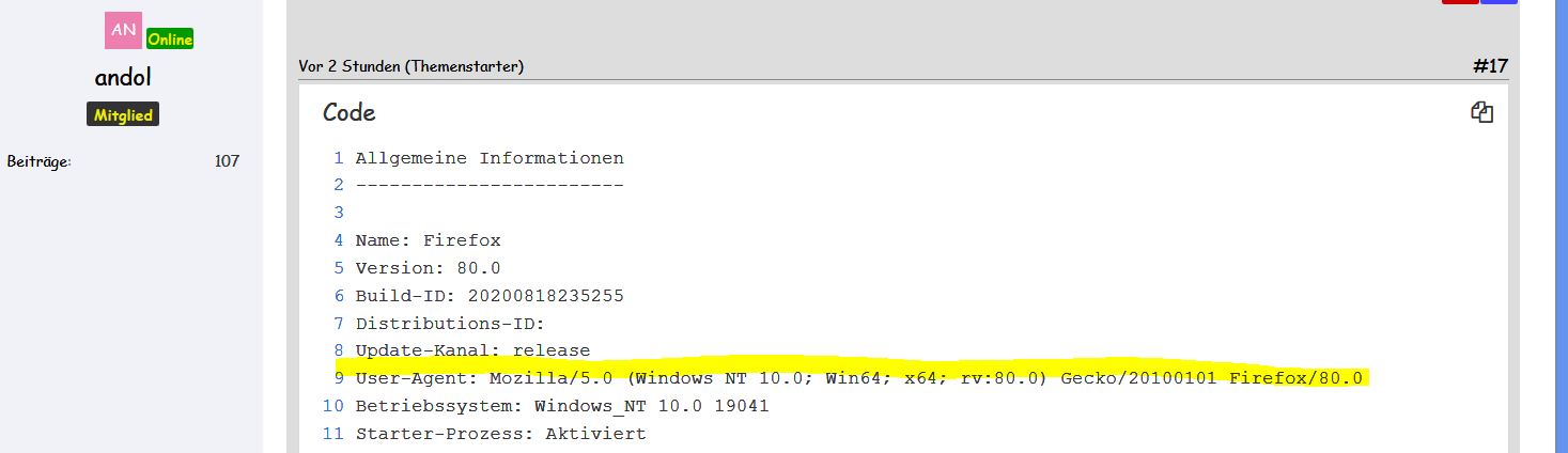 Websites erkennen darüber das von dir genutzte Betriebssystem und den Browser.
