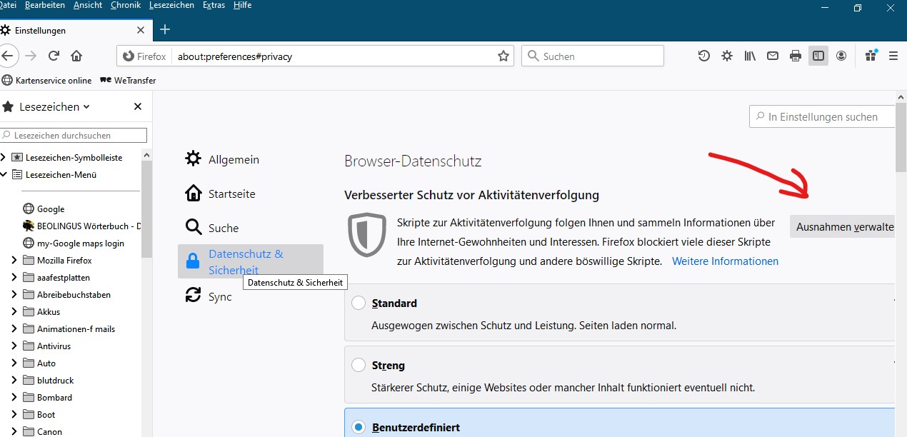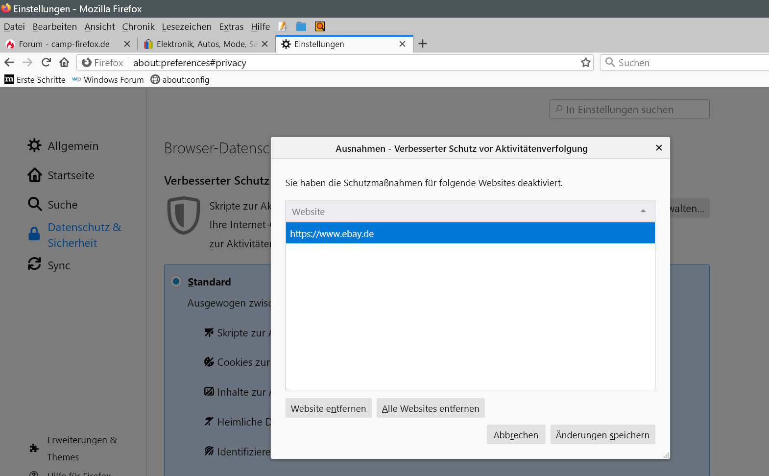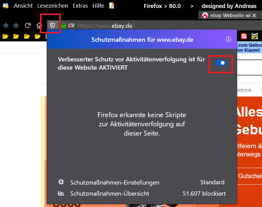 Ist es möglich, nur für die ebay-Seiten die Aktivitätenverfolgung dauerhaft einzustellen?