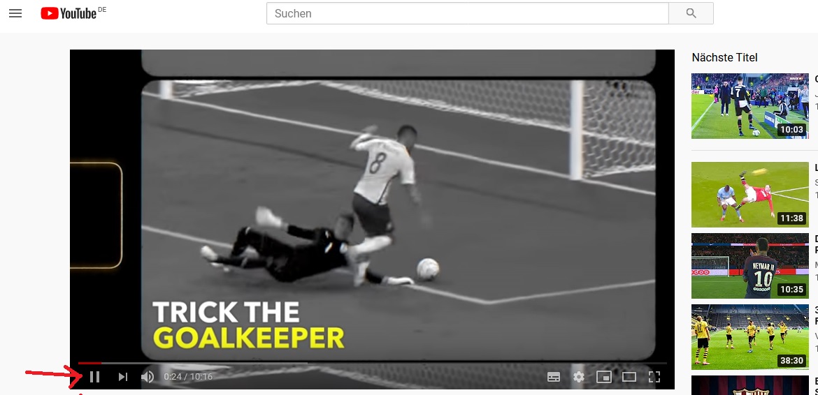 Jetzt muss nach dem Öffnen des Browsers nur noch das erste Video 2 Mal gestartet werden.