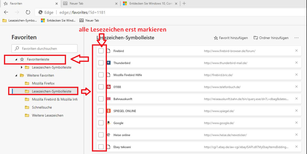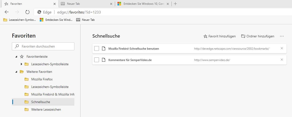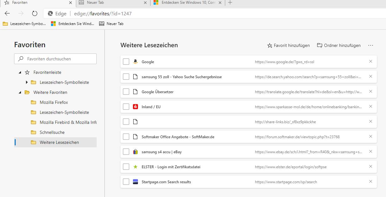 • Ich werde verrückt mit diesem blöden Edge. Gestern noch wurde die Favorlitenleiste angezeigt. Jetzt kann ich machen, was ich will, Strg+Umschalten+B, die Favoritenliste bekomme ich nicht hin.