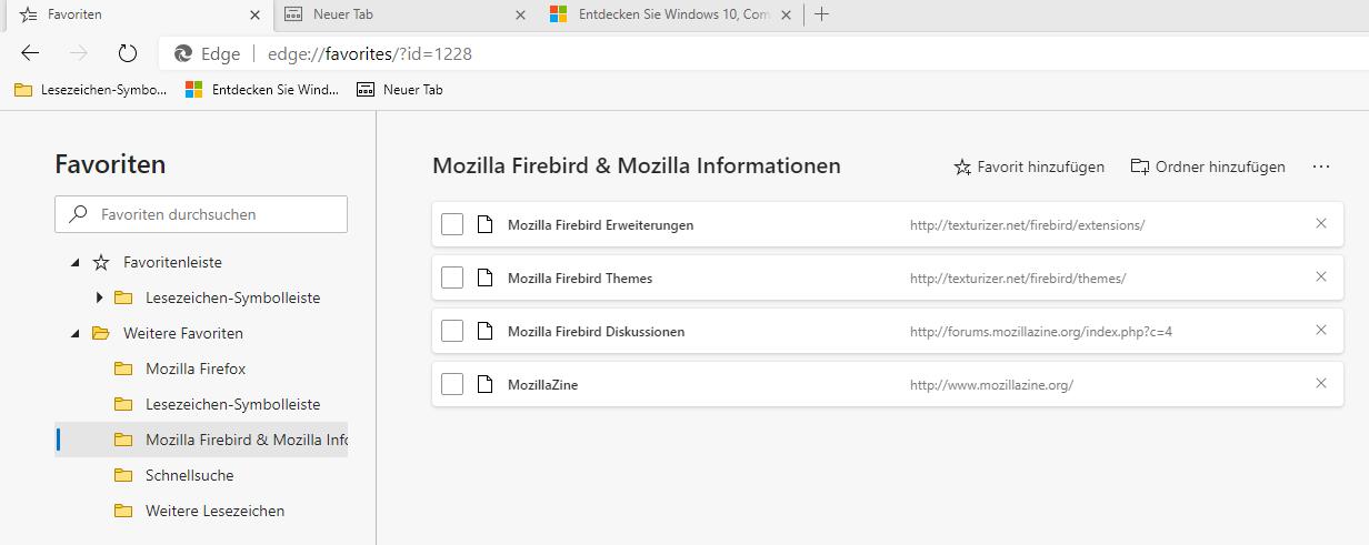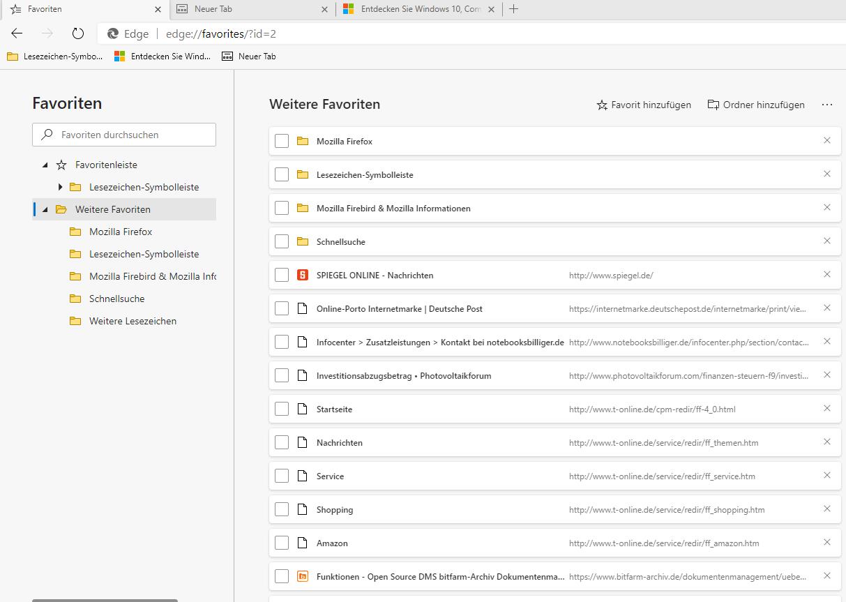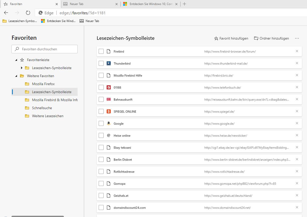 • Ich werde verrückt mit diesem blöden Edge. Gestern noch wurde die Favorlitenleiste angezeigt. Jetzt kann ich machen, was ich will, Strg+Umschalten+B, die Favoritenliste bekomme ich nicht hin.