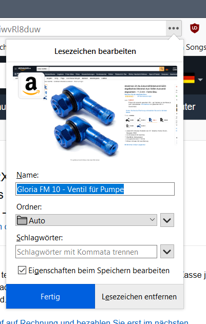 • Nur mal so: Um ein Lesezeichen abzuspeichern, reicht ein Klick auf den Stern. Mit dem Häkchen kommt auch dort das Fenster Lesezeichen bearbeiten.