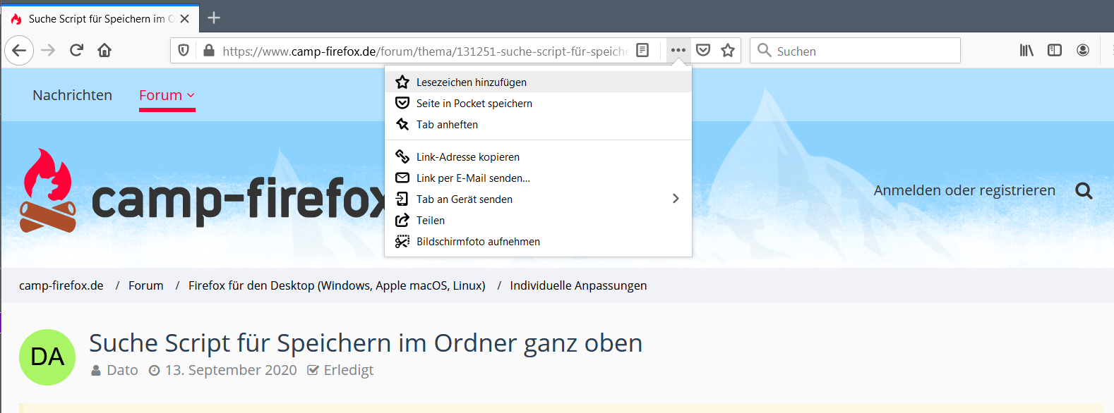 Suche Script für Speichern im Ordner ganz oben