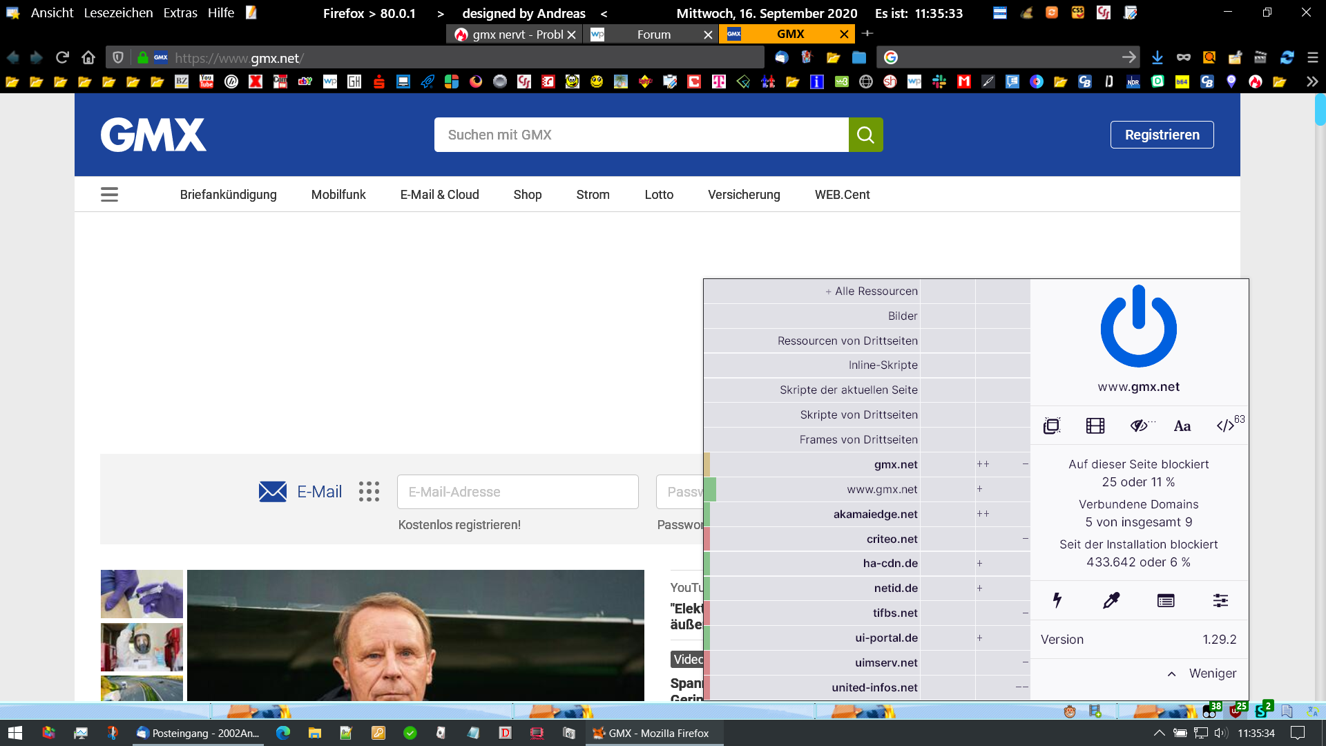 Jetzt kann ich den Link erneut aufrufen, dann erscheint die Seite normal, und ich kann Daten eingeben. Bin ich dann im Postfach angelangt, so erscheint wieder dieses Popup, in dem ich alles ablehne, aber es erscheint später trotzdem immer wieder. Grausam!![]()