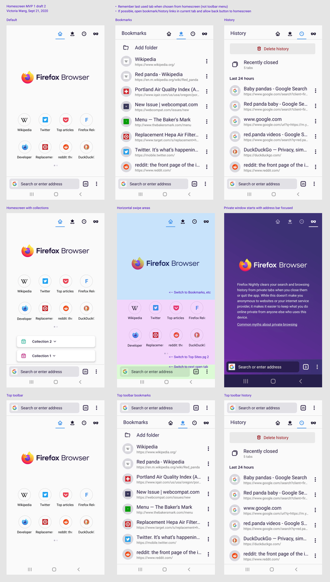 Es wird gerade am Design dafür gearbeitet, Lesezeichen wieder auf dem Startbildschirm zu integrieren. Der aktuelle Entwurf sieht so aus: