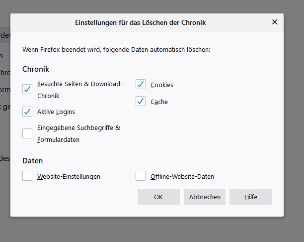 Ich habe auf verschiedenen Webseiten die Zweistufige Verifizierung per SMS aktiviert. Nun möchte ich auf zwei Seiten nicht immer das One-Time Password (OTP) eingeben müssen und habe bei der Anmeldung den Haken "In diesem Browser nicht mehr nach dem Code fragen" gesetzt. Nach beenden von FF und wieder starten und Anmelden ist der Haken weg. Was genau muss ich ändern? Bild 1 zeigt die Einstellung beim FF Datenschutz.