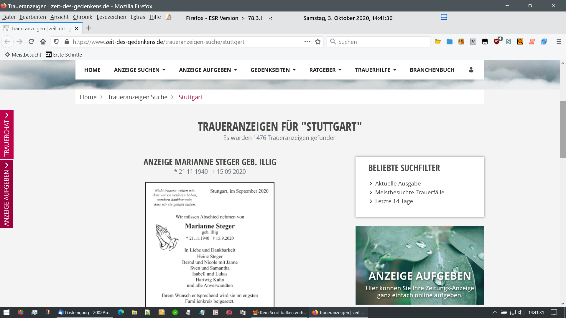 • Oder anders ausgedrückt, die andere "aller möglichen Firefox-Versionen", das ist die mit uBlock.