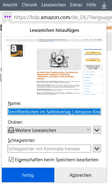 wenn man die 3 Punkte in der Adressleiste anklickt um ein Lesezeichen hinzuzufügen, und man nichts anklickt.
