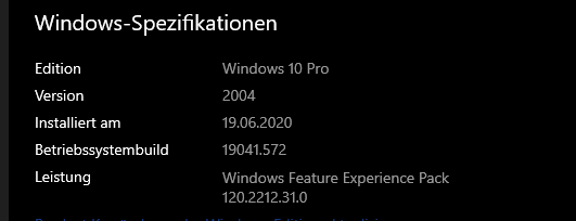 Windows 10 ist build 10.0.19041.572 → 20H2