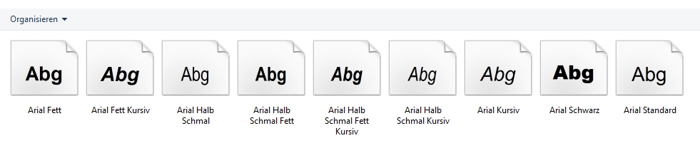 Merowinger86 Schaue mal in der Systemsteuerung von Windows unter Schriftarten nach. Klicke dort auf Arial und schaue nach, welche Schriftschnitte es gibt.