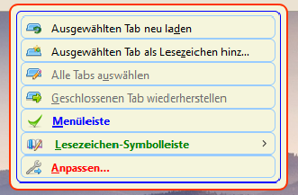 Da hat sich ab heute was geändert. Ich habe ja die Tab-Leiste ganz unten, Lesezeichen darüber. Bis vor dem heutigen Update konnte ich immer rechte Maus in Tab-Leiste, dann wurde der Eintrag angezeigt. Er wird heute auch angezeigt, aber der Rechtsklick muss in die Lesezeichen-Symbolleiste erfolgen. Das soll nun einer so schnell mitbekommen. ![]()