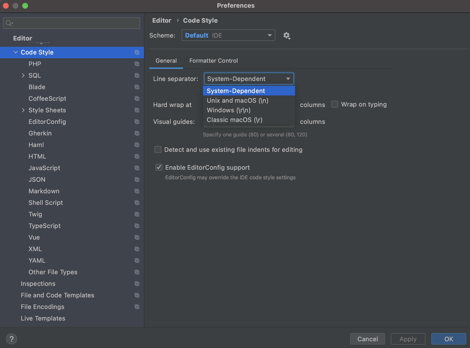 Es ist mindestens 20 Jahre her, dass die Mac-Plattform ein anderes Zeilenende hatte. Seit dem nutzt macOS die UNIX-Konvention. Aber das ist sowieso in jedem halbwegs brauchbaren Editor eine Einstellungs-Sache, unabhängig davon, welches Betriebssystem man tatsächlich nutzt. ;)